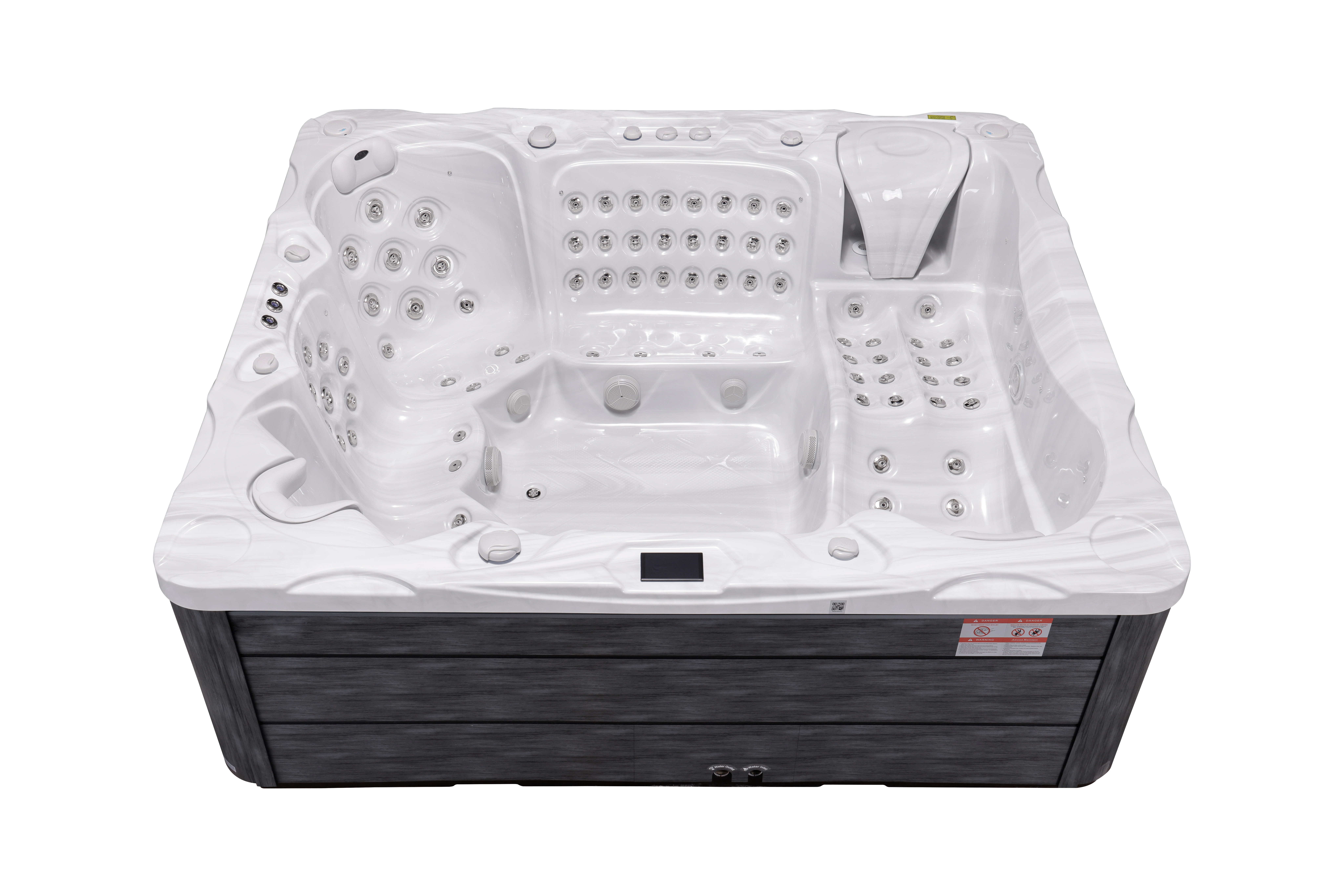 Модель комплектуется спа-крышкой для сохранения тепла и защиты, тремя подголовниками для комфортного размещения и ступенями для удобного доступа в бассейн.