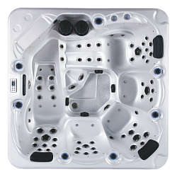 Роскошный плавательный гидромассажный СПА-бассейн с противотоком Joy Spa JY 8601 предусматривает отдельную чашу для гидромассажа, рассчитанную на 4 человека, а также большую чашу для плавания, где дополнительно предусмотрено 2 сидячих гидромассажных места. Общее количество гидромассажных форсунок в бассейне - 59. Они расположены так, чтобы обеспечивать полноценный гидромассаж всего тела каждого пользователя. Помимо сидячих мест в чаше бассейна предусмотрен один лежак, в котором форсунки размещены так, чтобы тщательно массировать спину, ягодицы, икры и стопы.